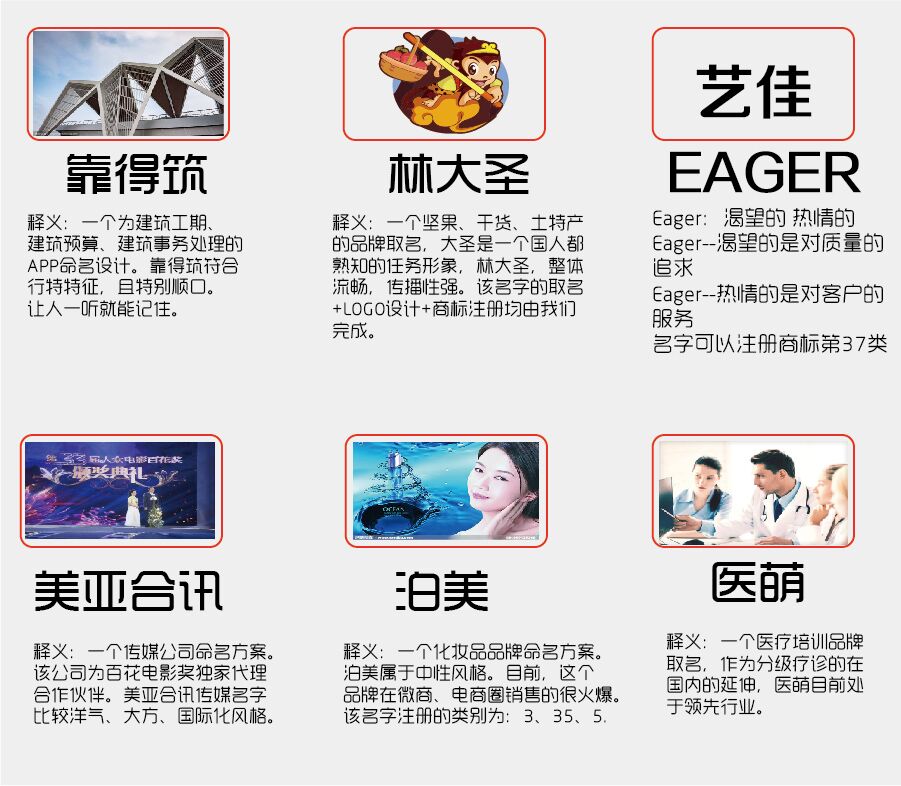 3、国学老师审核名字方案,预先在工商局系统查询,确保能够注册,最终选择最佳10个好名方案,